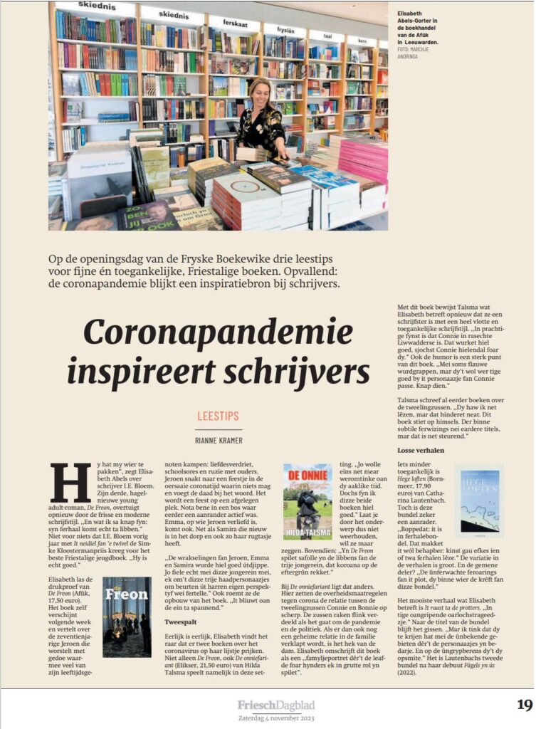 Artikel Friesch Dagblad: Coronapandemie inspireert schrijvers